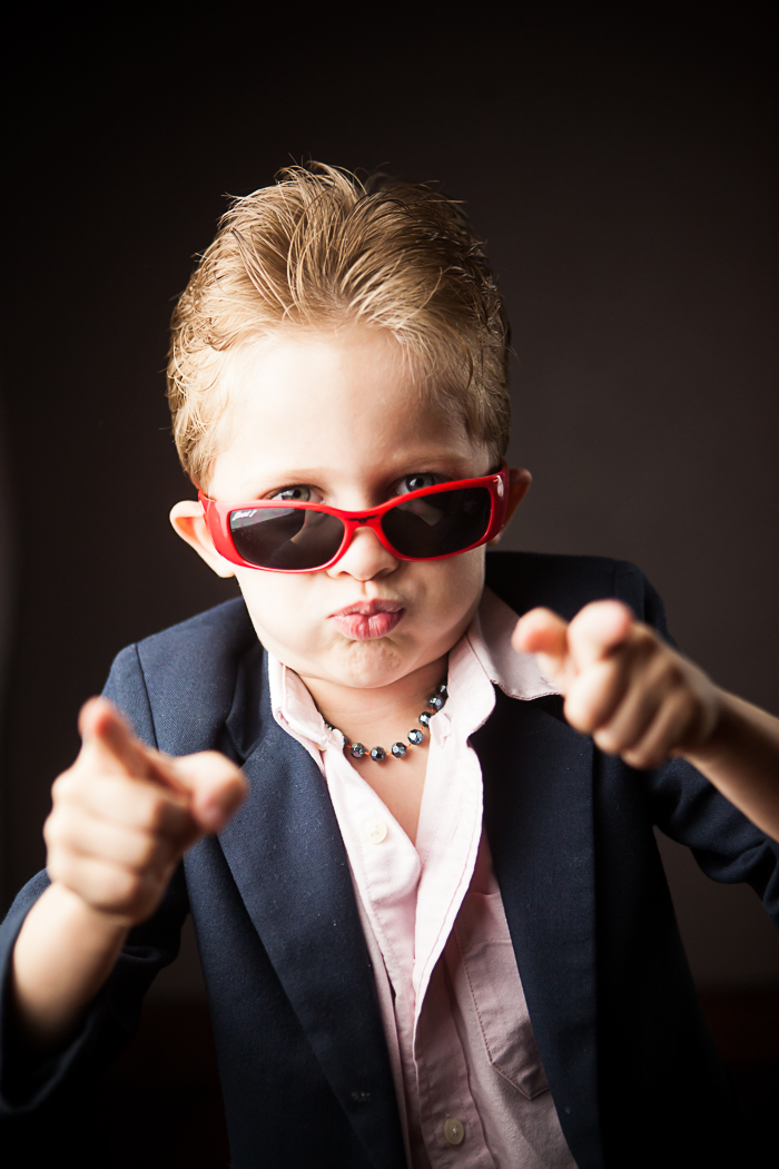 Finally, she said, “Alright, stop.” She handed me a pair of sunglasses, a black jacket, and a bow tie. “Put these on.”